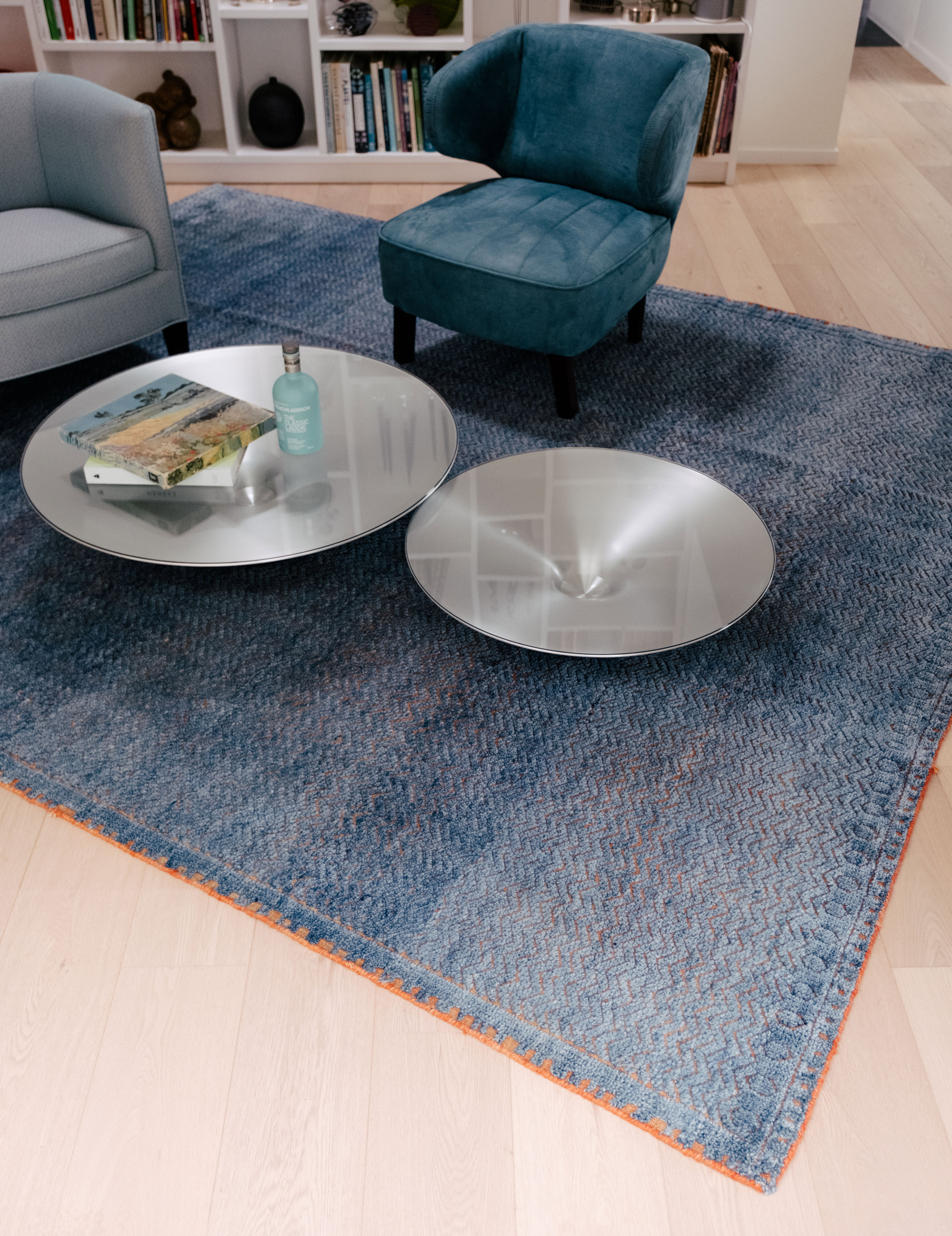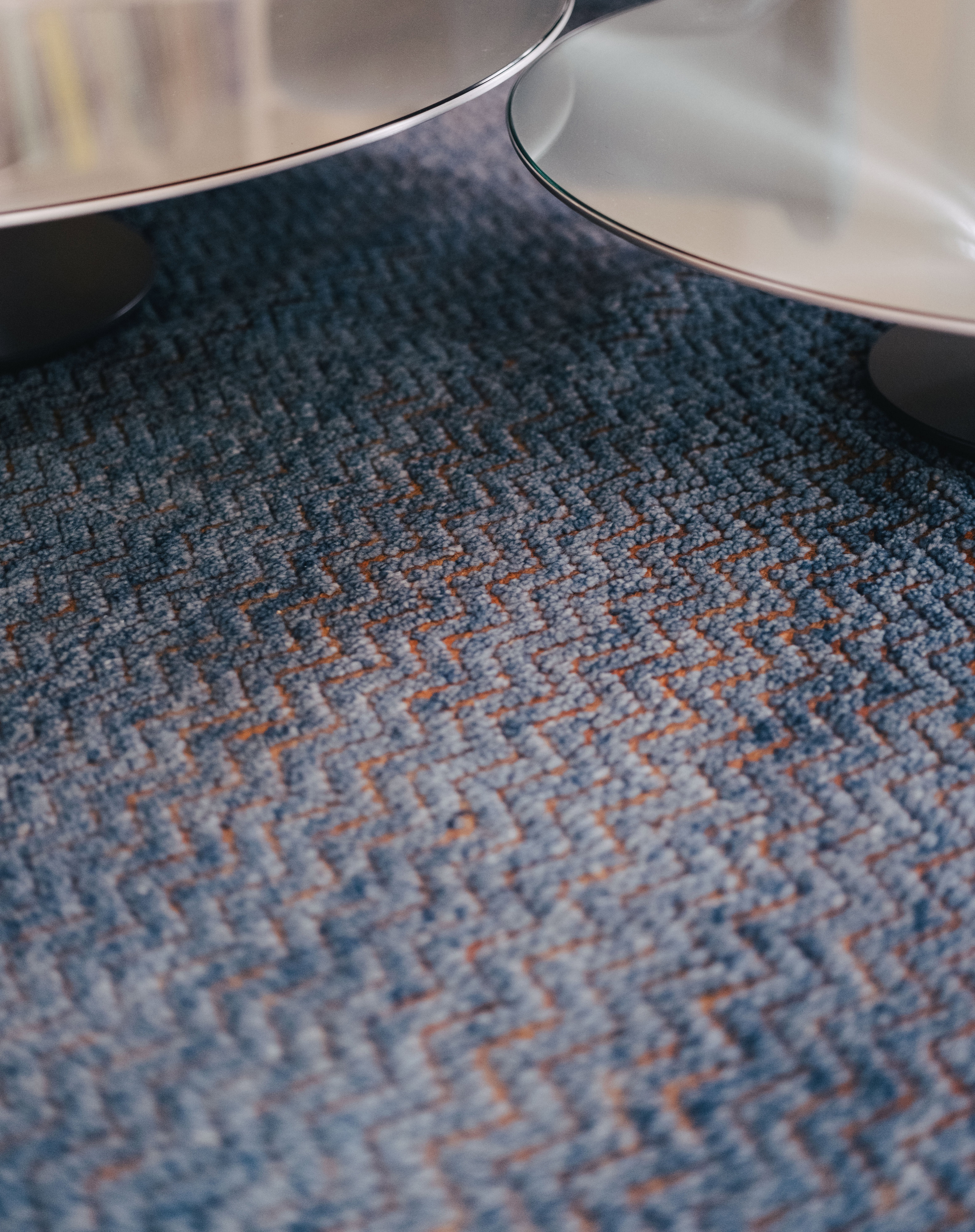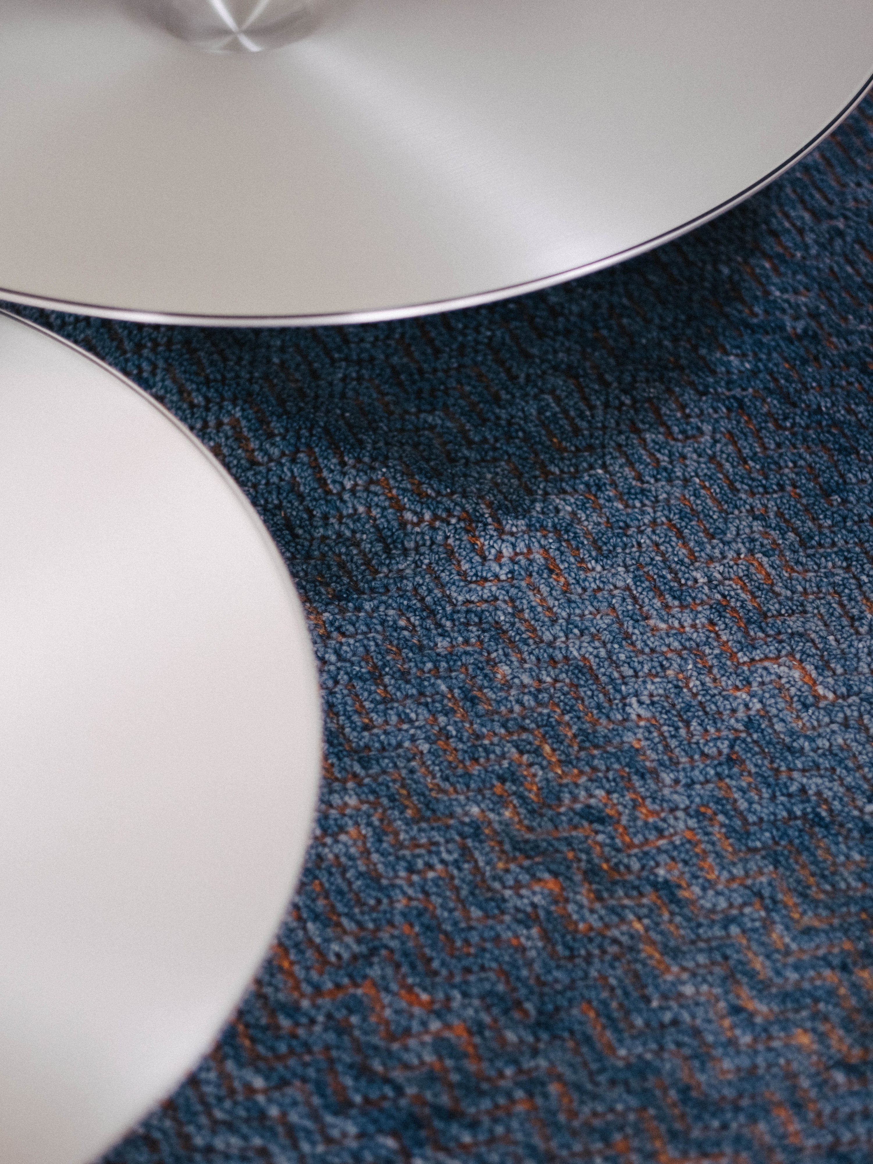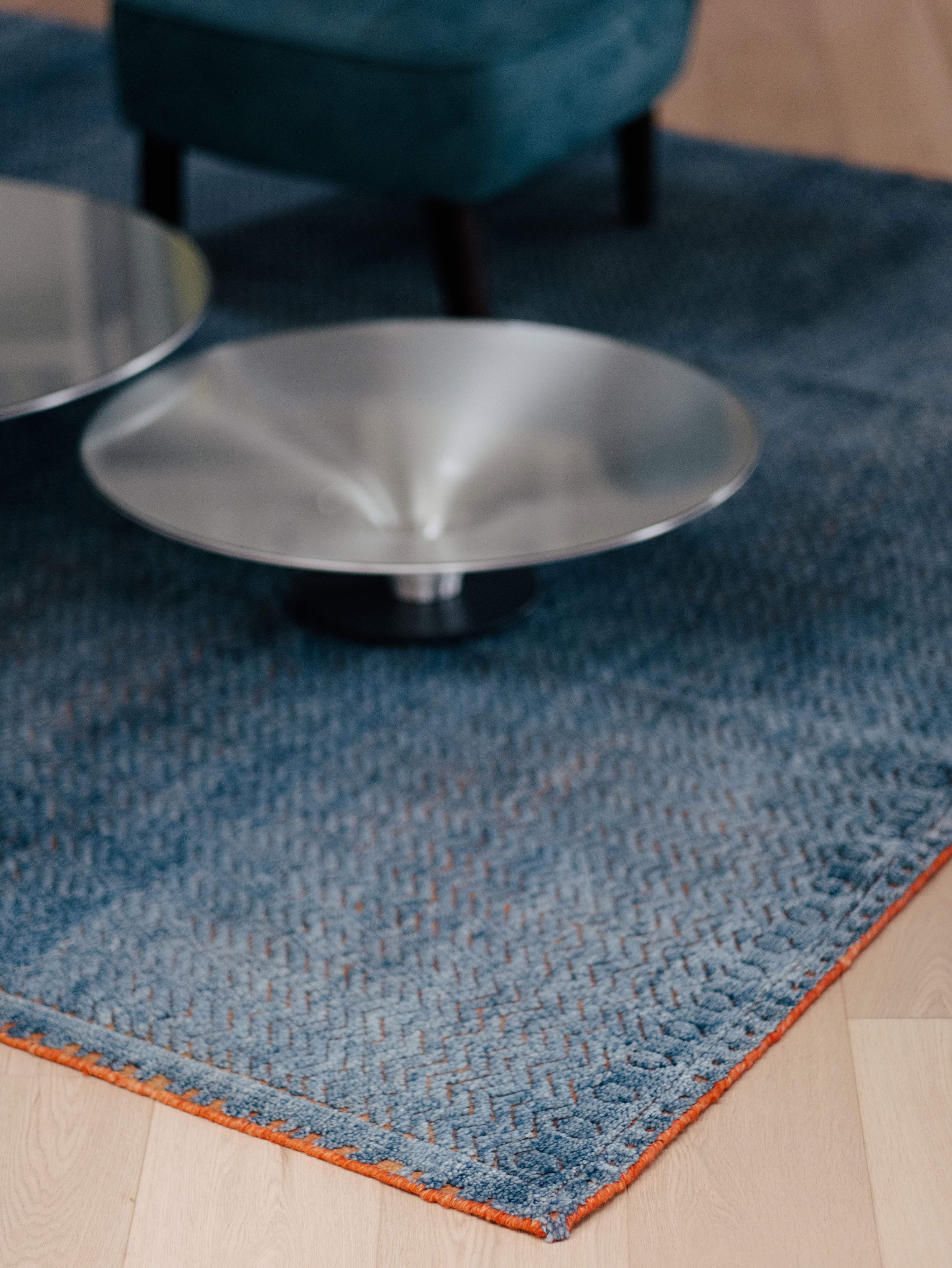 L’utilisation de fibres viscose avec un assemblage de laine pour obtenir une profondeur dans le dessin.